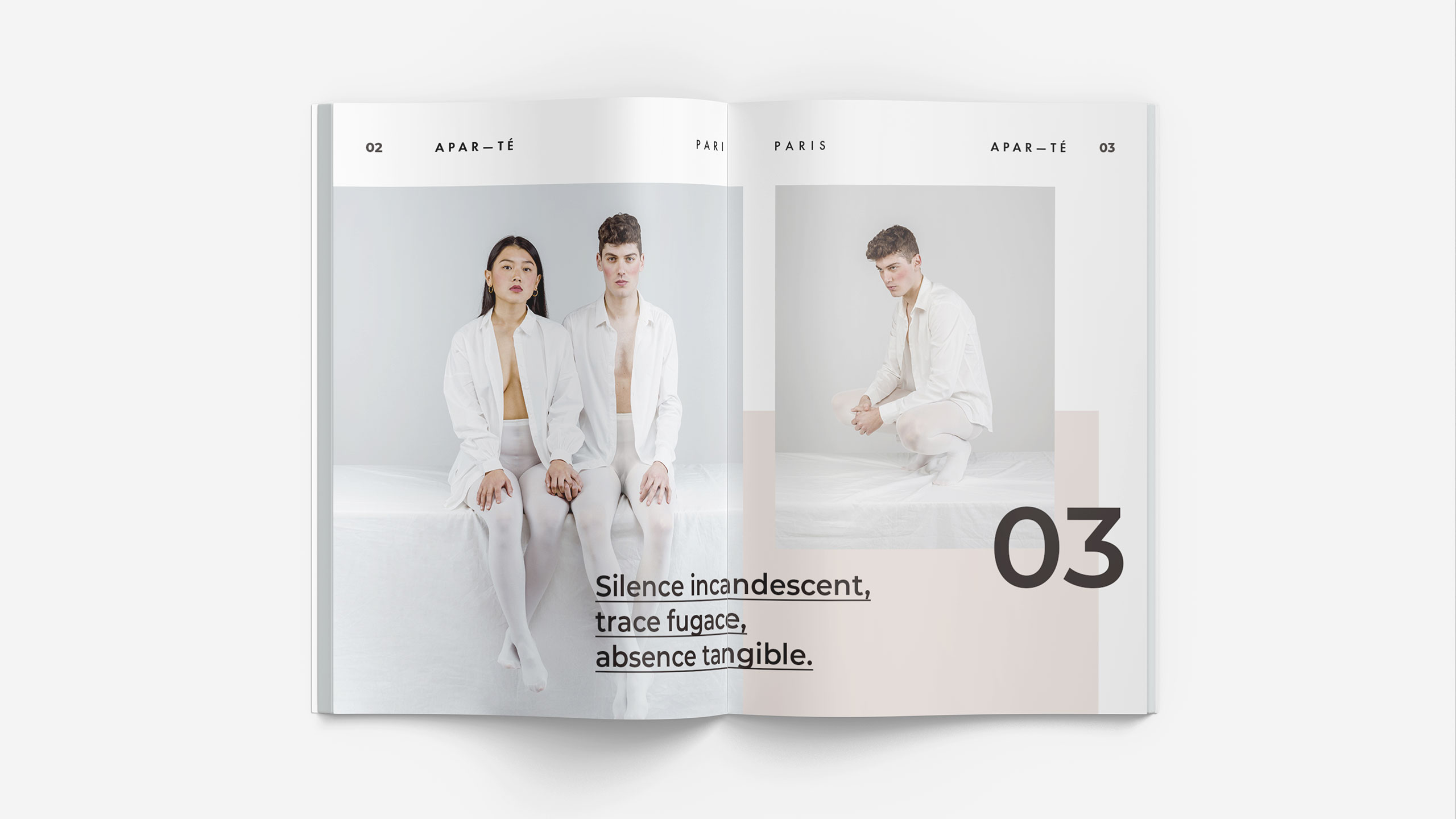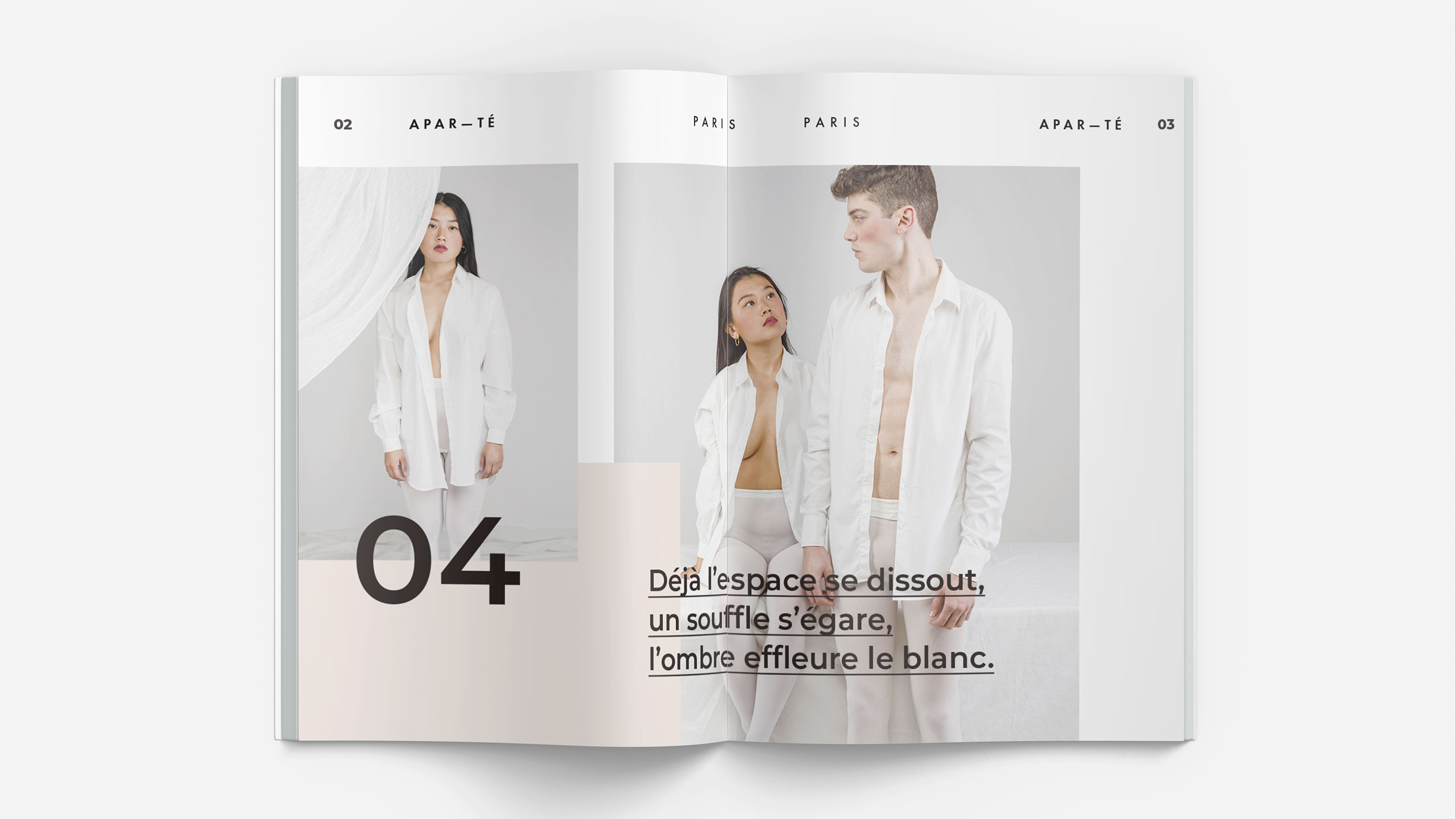 The Apar-Té brochure captures refined minimalism through soft light, neutral palettes, and quiet sensuality. Each page expresses a dialogue between fabric, form, and emotion—where what is unseen becomes as meaningful as what is shown. Clean typography and balanced composition reinforce a sense of calm precision, while delicate photography conveys intimacy and stillness. This Spring–Summer 24 edition reads like a visual meditation, blending fashion, emotion, and atmosphere into one coherent aesthetic. Apar-Té explores the subtle tension between exposure and concealment, presence and pause—offering a moment of contemplation in a world of overstimulation and noise.