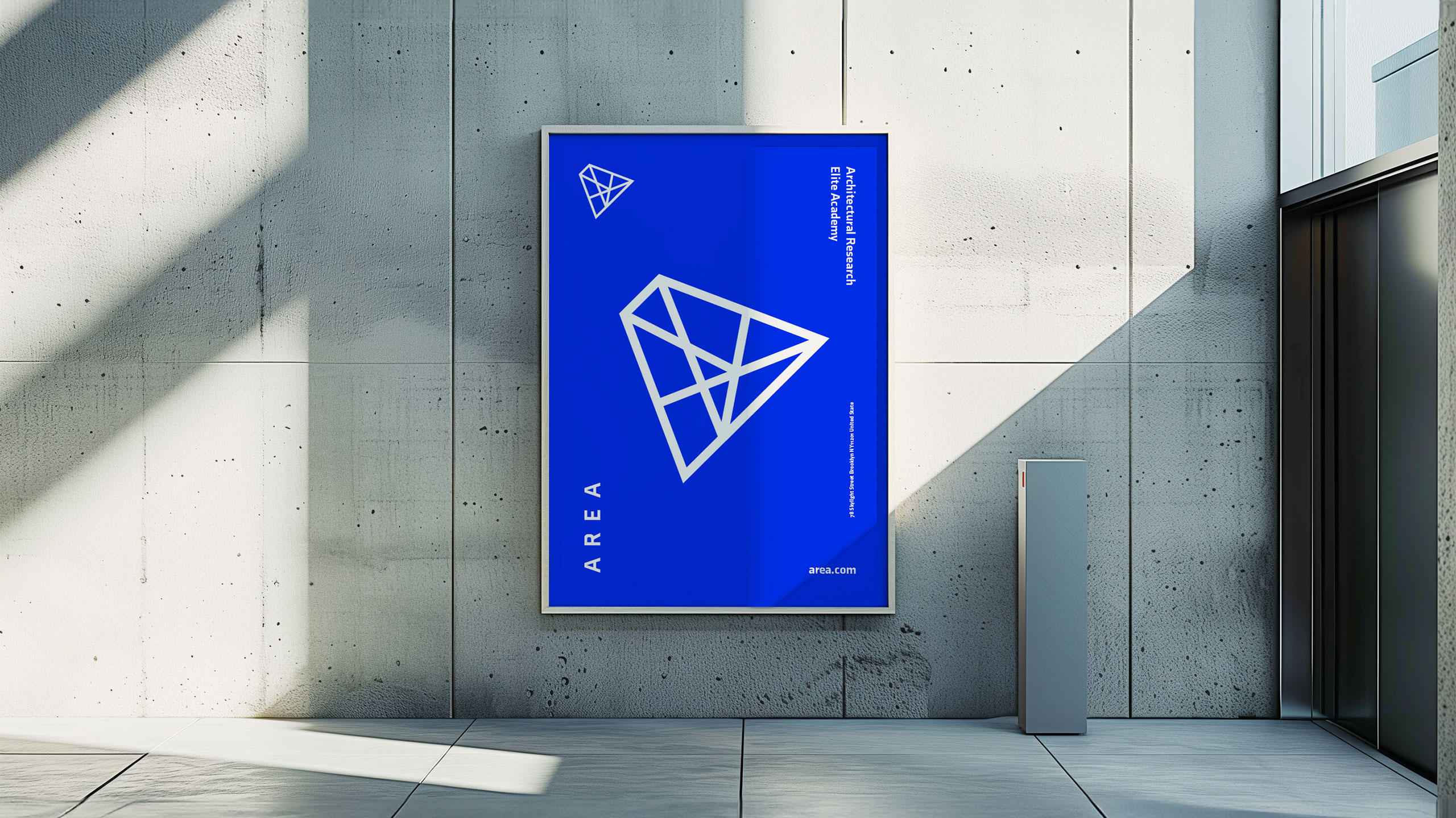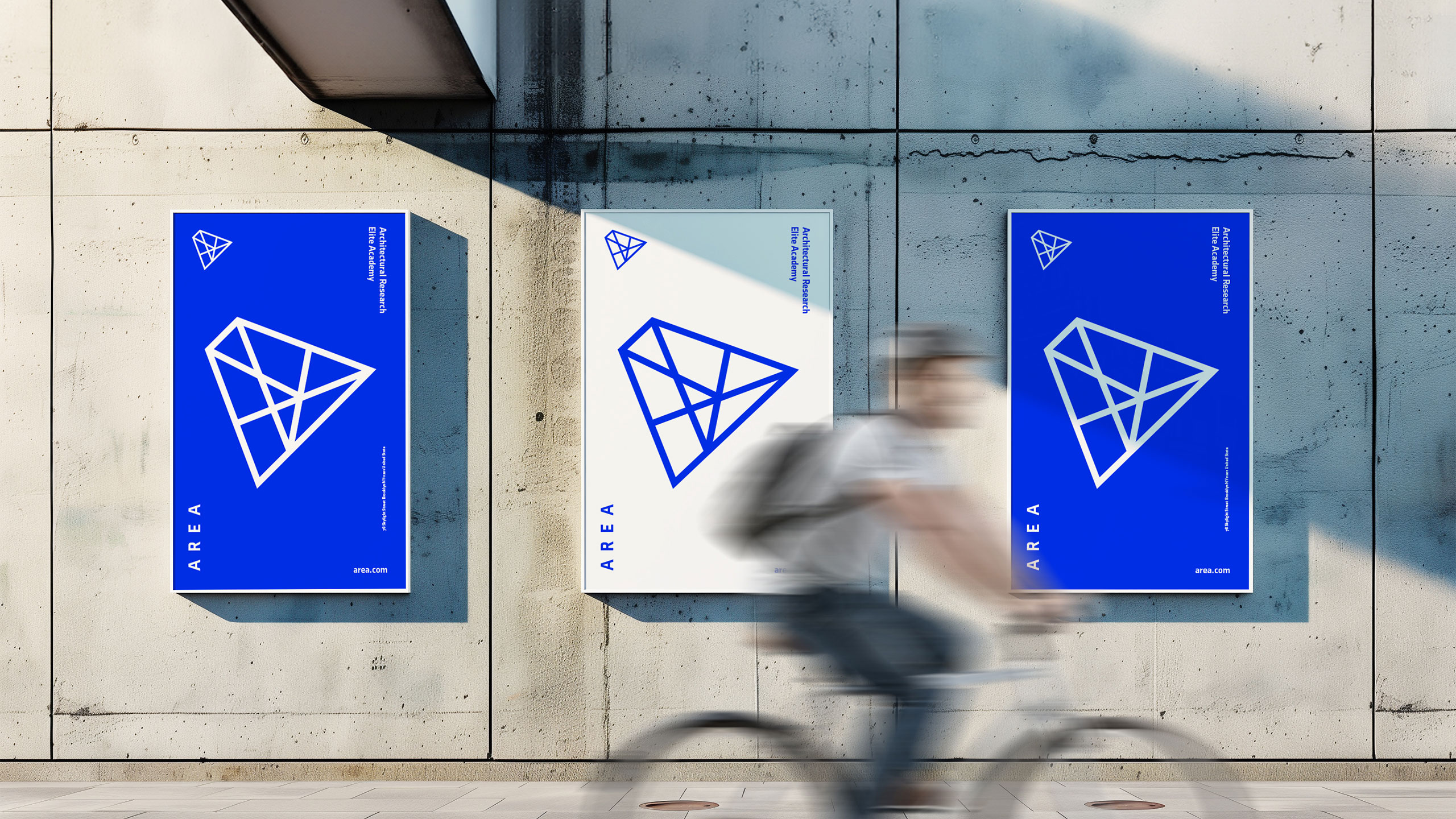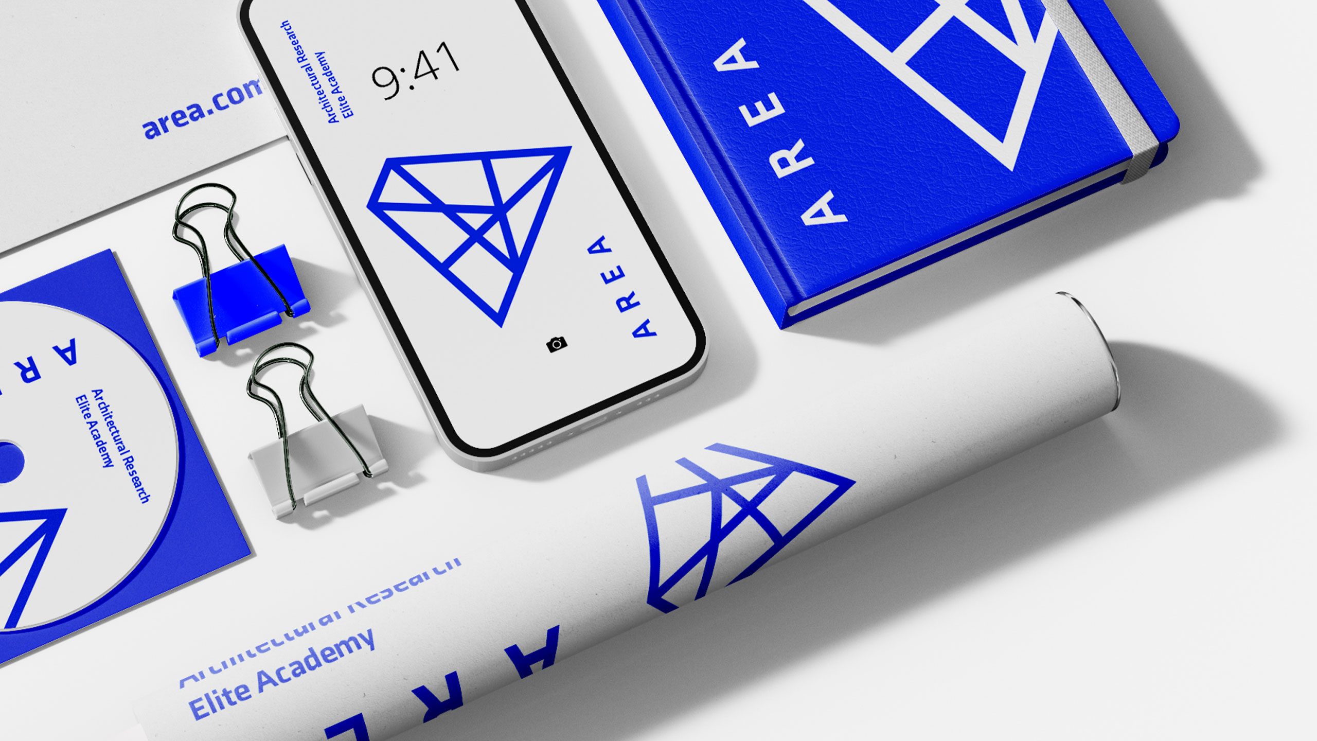 How can design symbolize innovation and collaboration? AREA’s minimalist blue-and-white identity uses a suspended “A” logo referencing pyramids to embody timeless architecture and interconnected ideas within a modern school brand.