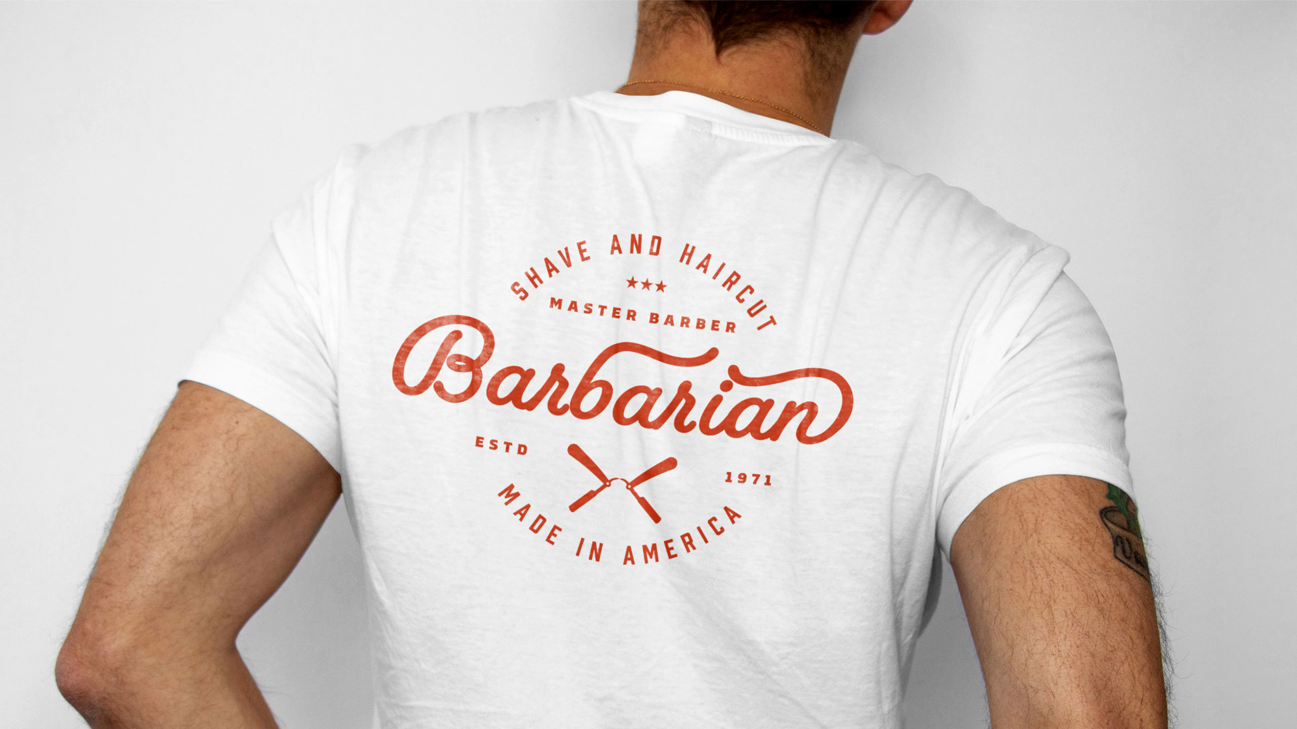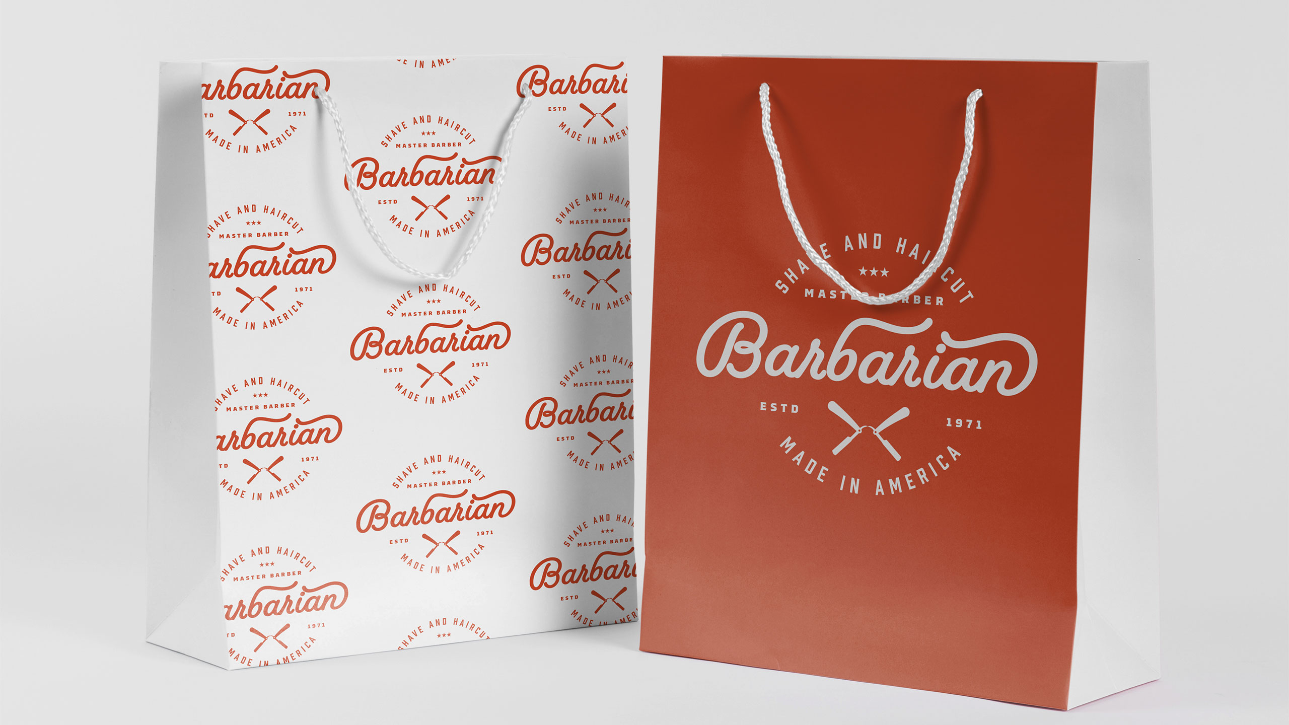 Bold and refined, Barbarian blends traditional barber craft with a contemporary edge. The name evokes both the raw masculinity of a “barbarian” and the finesse of beard grooming, playing on strength and expertise. The visual identity adopts a vintage aesthetic reimagined through a fresh palette of orange, white, and silver—colors that speak to confidence, cleanliness, and precision. Used across packaging, signage, T-shirts, and bags, the design projects a timeless craftsmanship rooted in centuries-old tradition, yet entirely relevant today. Each element communicates mastery and modern masculinity, making Barbarian a symbol of enduring quality in men’s grooming.
