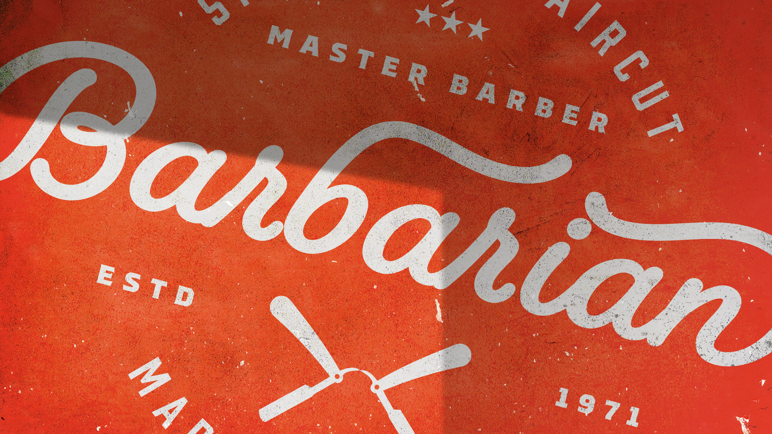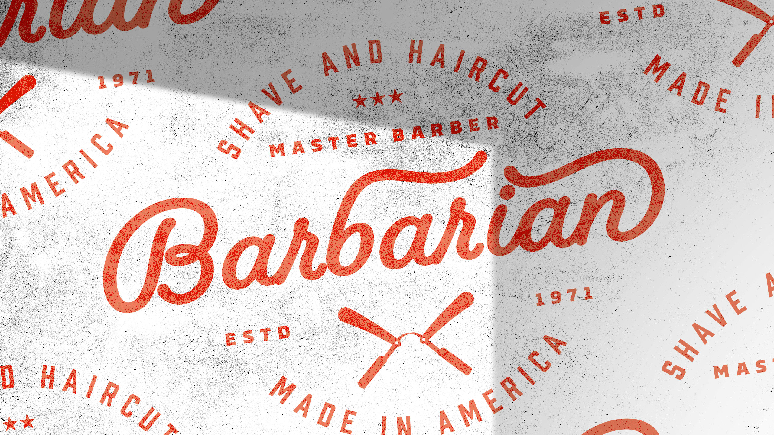 How can graphic design express Barbarian’s dual identity—raw masculinity and expert precision—by merging vintage barber traditions with a bold, modern aesthetic that celebrates strength, care, and timeless masculine refinement?