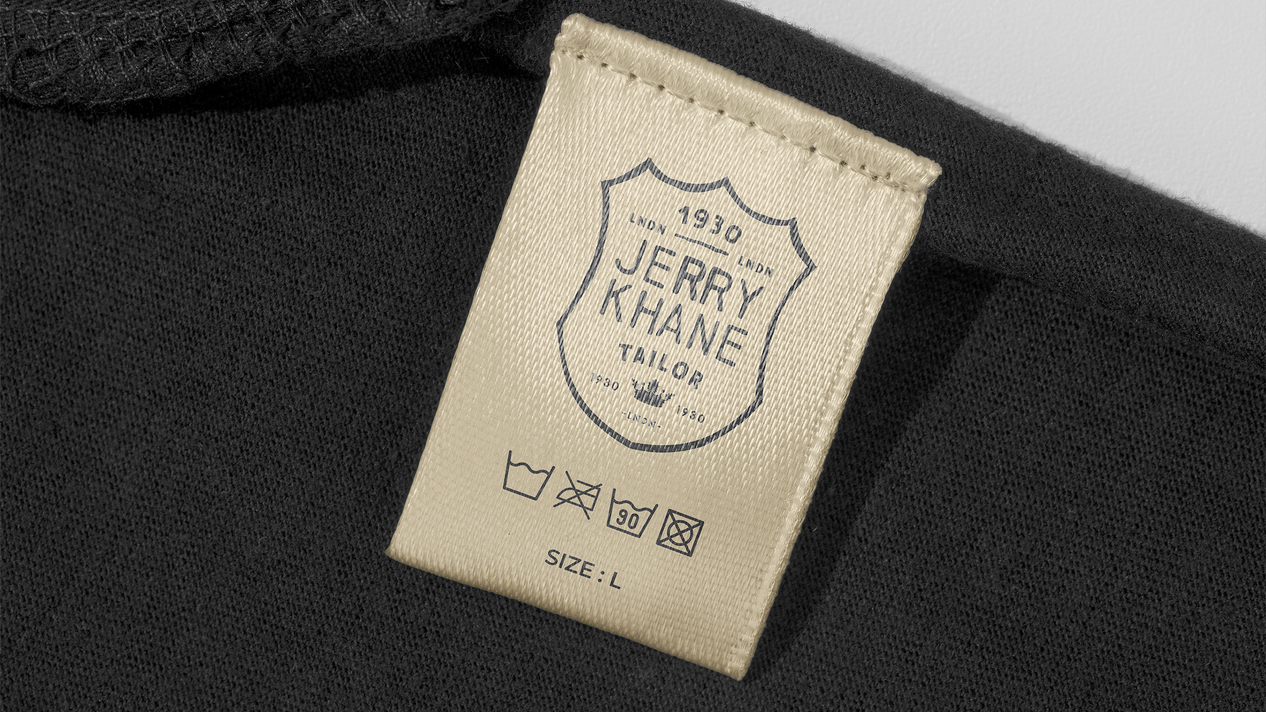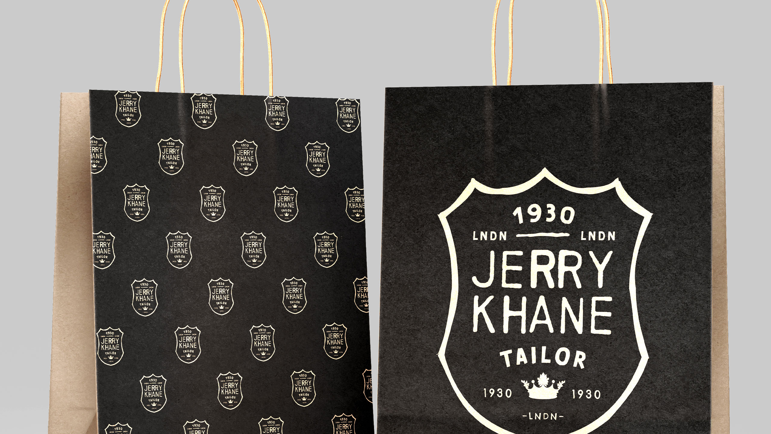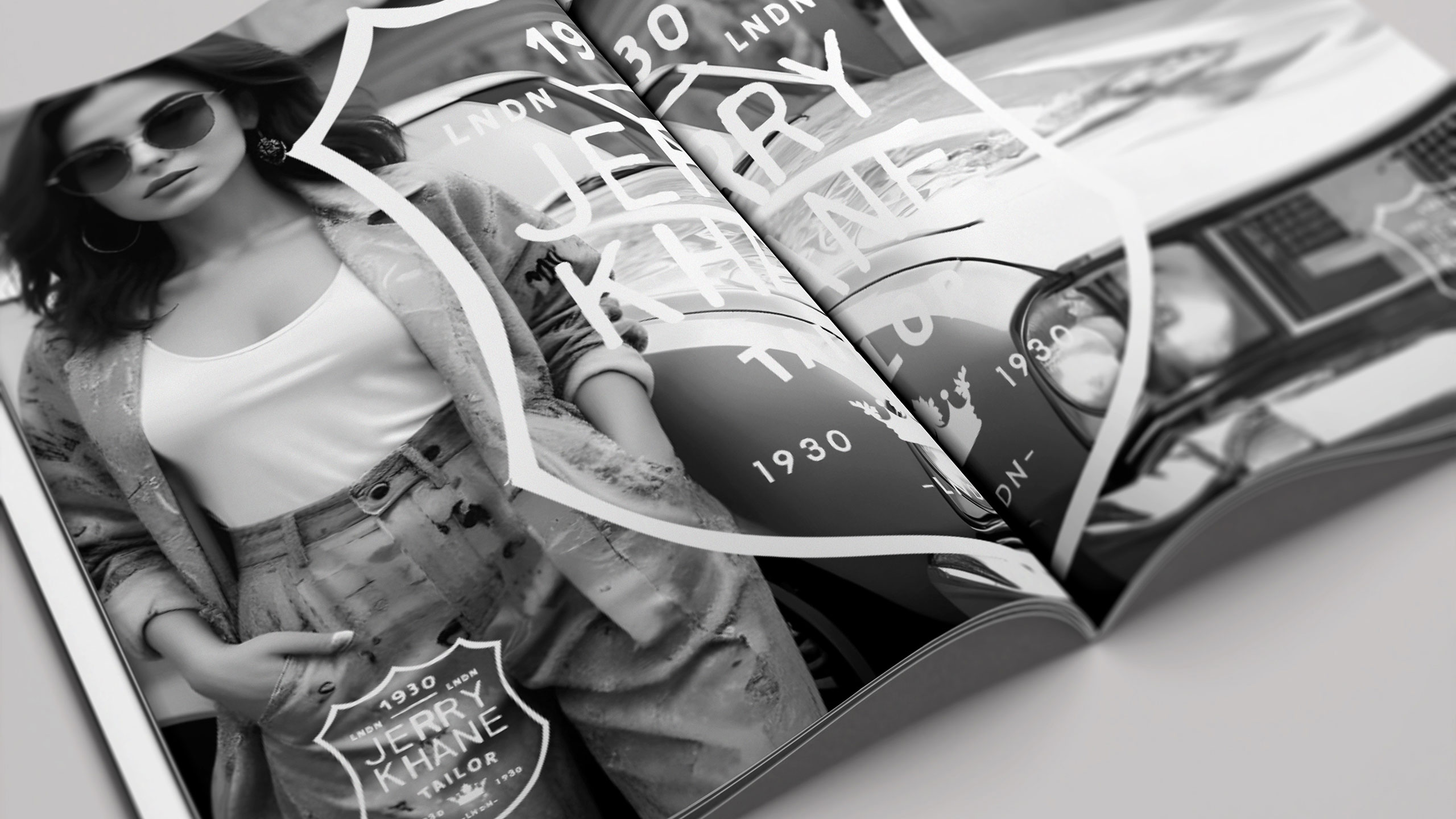 Jerry Khane – Tailor blends vintage elegance with raw authenticity. Using a black and gold color palette, the brand evokes sophistication and discretion. The logo adopts a heraldic crest shape, suggesting aristocratic heritage and exceptional craftsmanship. Yet, hand-drawn lines introduce an artisanal, human touch. Graphic elements carry the texture of oil-stained paper and workshop grit, aligning with the “garage” trend — a nod to custom culture and retro masculinity. Imagery often places models beside classic cars, reinforcing this aesthetic. Even the name, Jerry Khane, cleverly echoes “jerrican,” fusing ruggedness with refinement. A brand where tradition meets tailored rebellion.