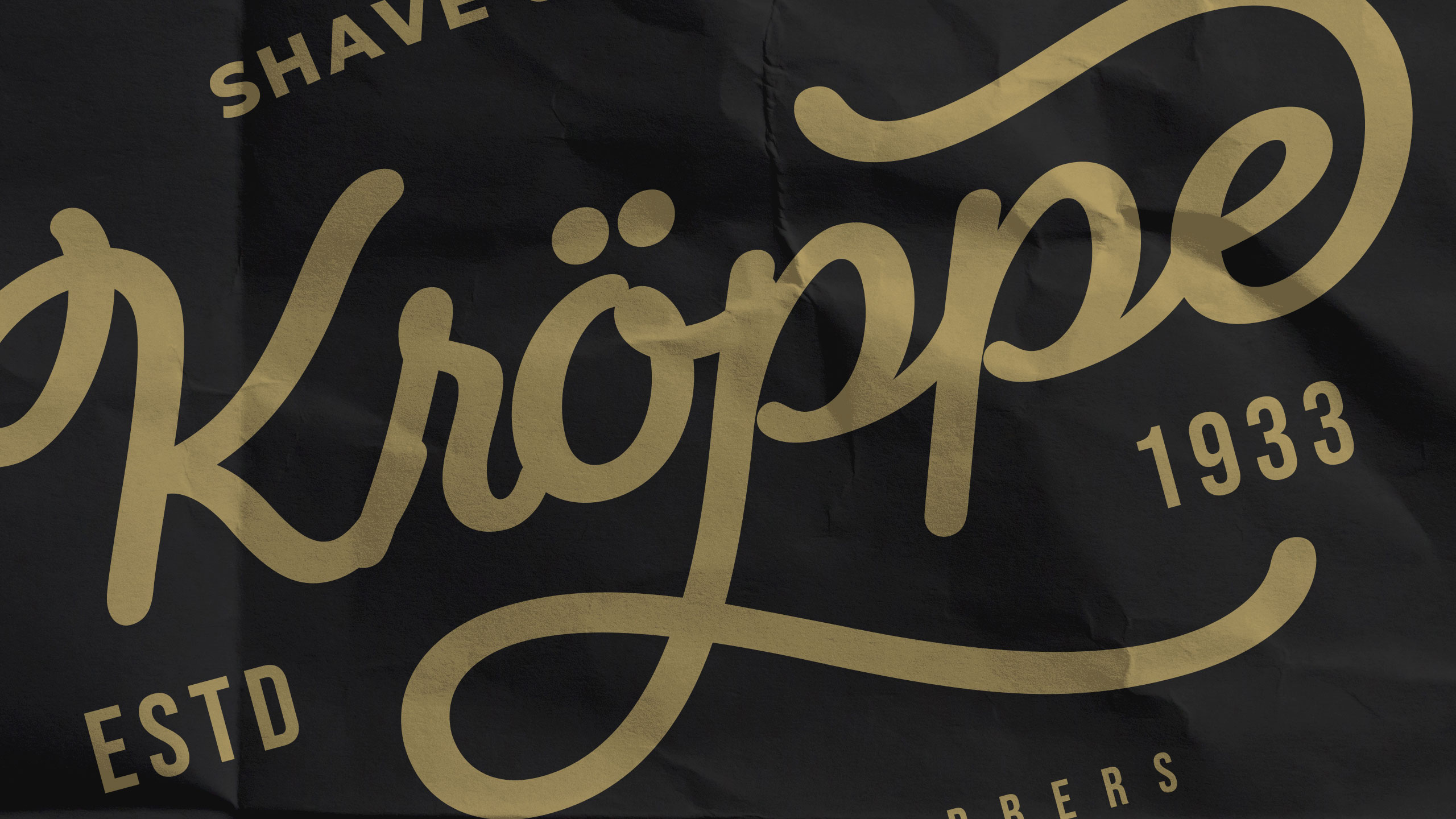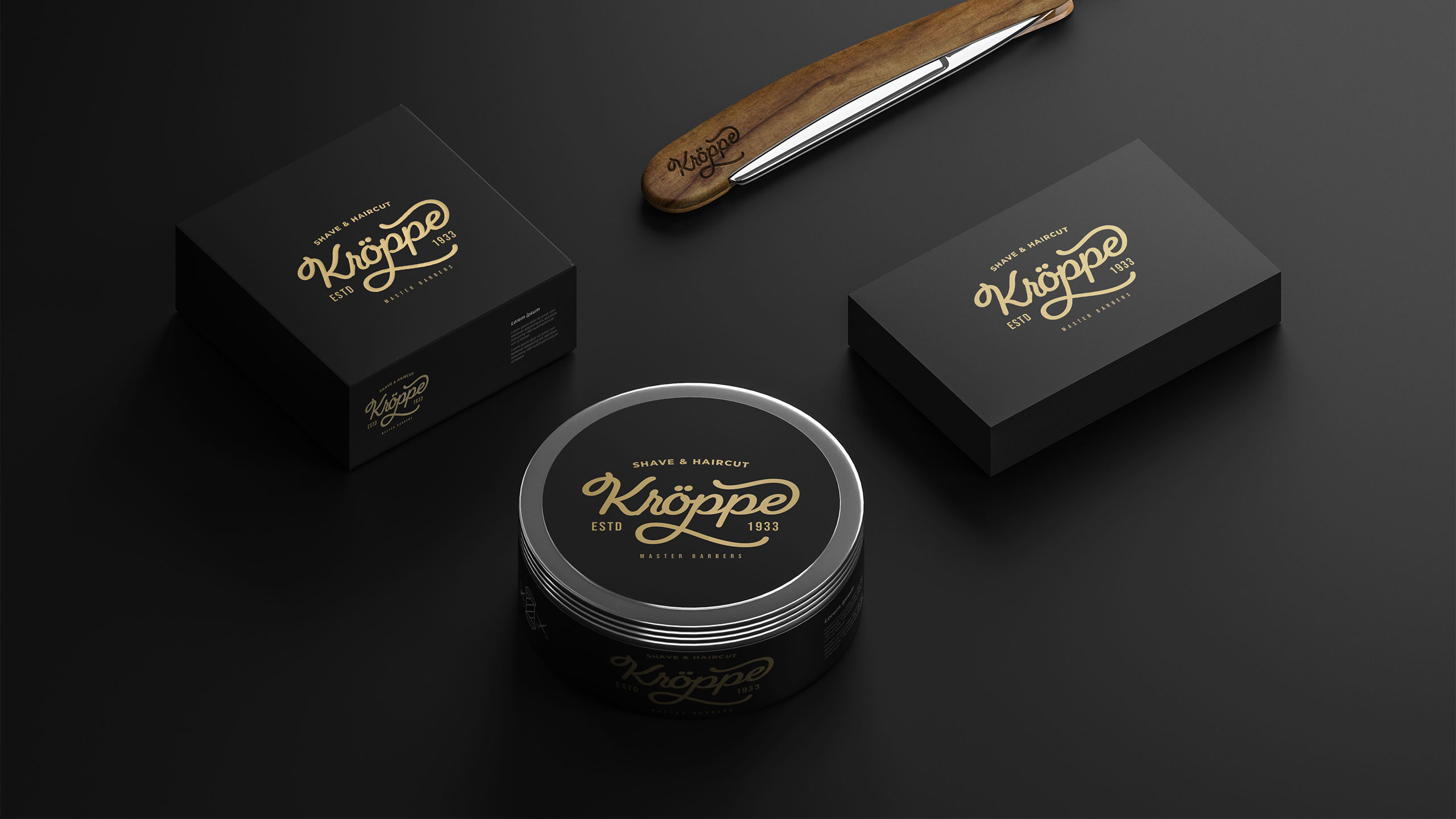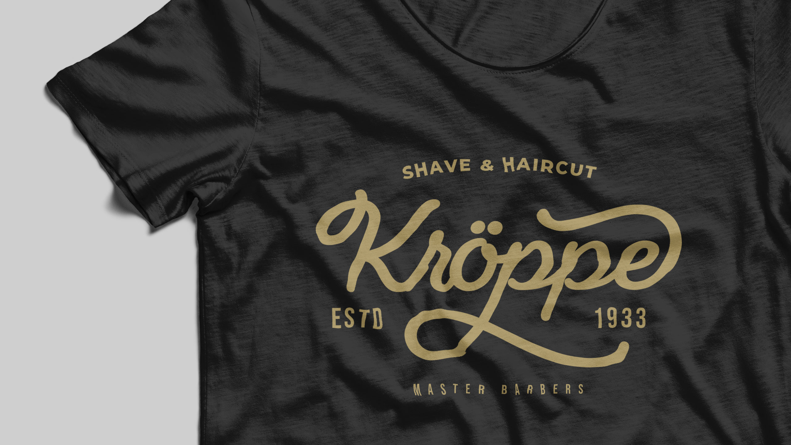 Kroppe’s graphic design channels vintage refinement and masculine elegance. Used across signage, packaging, T-shirts, bags, and stationery, the identity evokes the legacy of an old-world barbershop brand. With a name blending “crop” and Germanic flair, Kroppe positions itself as a historic house of expertise. The black-and-gold palette reinforces a sense of timeless luxury and confidence. A signature-style logo anchors the identity—deliberately unique and slightly ornamental—projecting craftsmanship and tradition. Every element supports the impression of premium, ritualistic care. Kroppe is more than a men’s cosmetic line; it’s a symbol of grooming heritage and dignified.