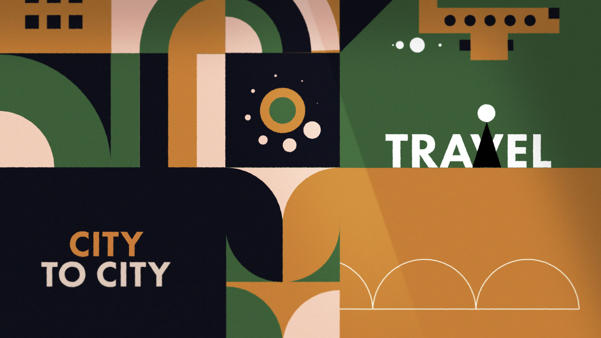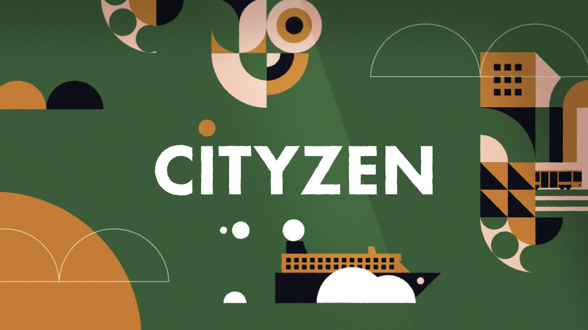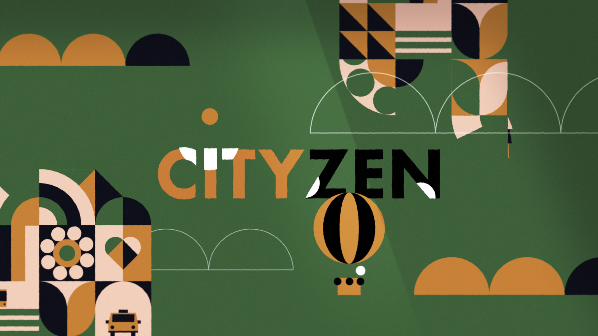 The brand identity for Cityzen, an intercity transport ticket booking app, features a cheerful and playful graphic design applied across multiple media. The name blends “city” and “zen,” reflecting stress-free urban travel. The dominant colors — green, pale yellow, and soft pink — create a light, welcoming atmosphere. The visual language is built around geometric, childlike illustrations that evoke a sense of carefree adventure, suggesting that using the app makes travel simple and joyful. This whimsical tone is reinforced in promotional videos through the use of music with playful, childlike tones, further emphasizing ease, positivity, and the pleasant experience of moving between cities.