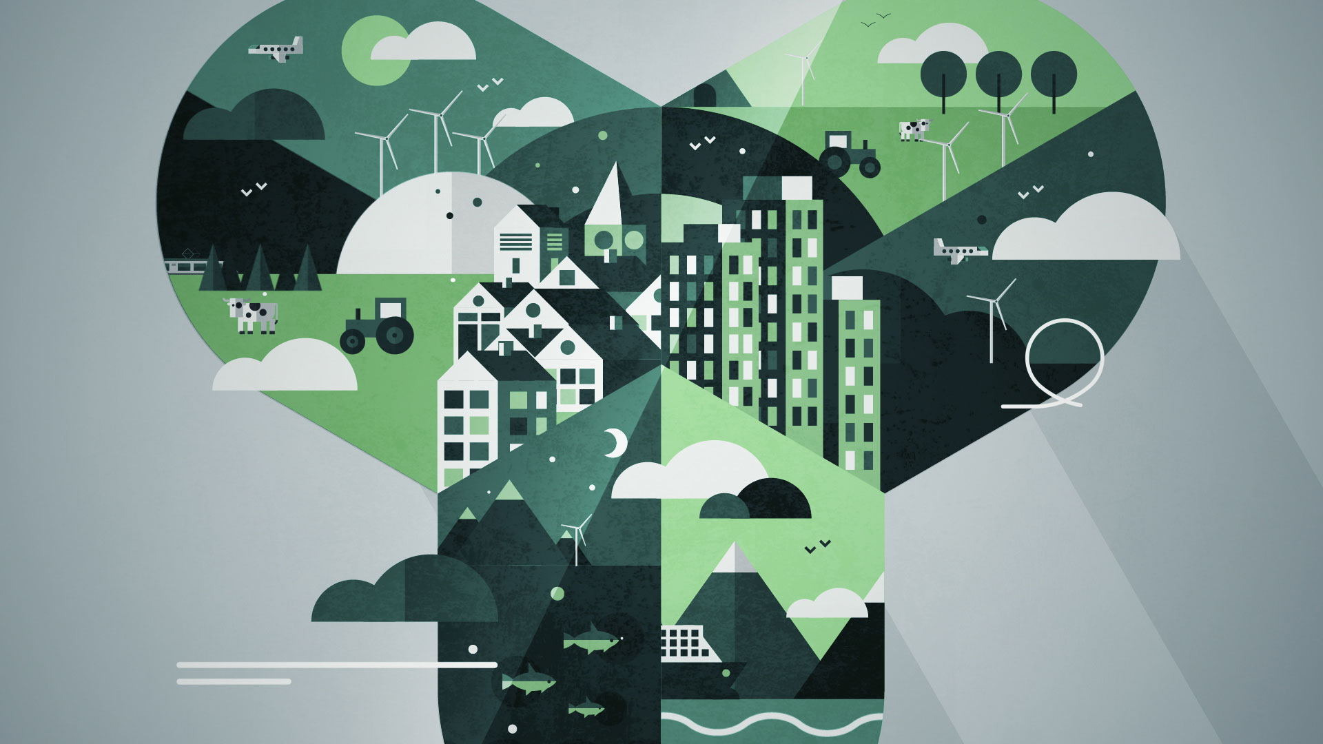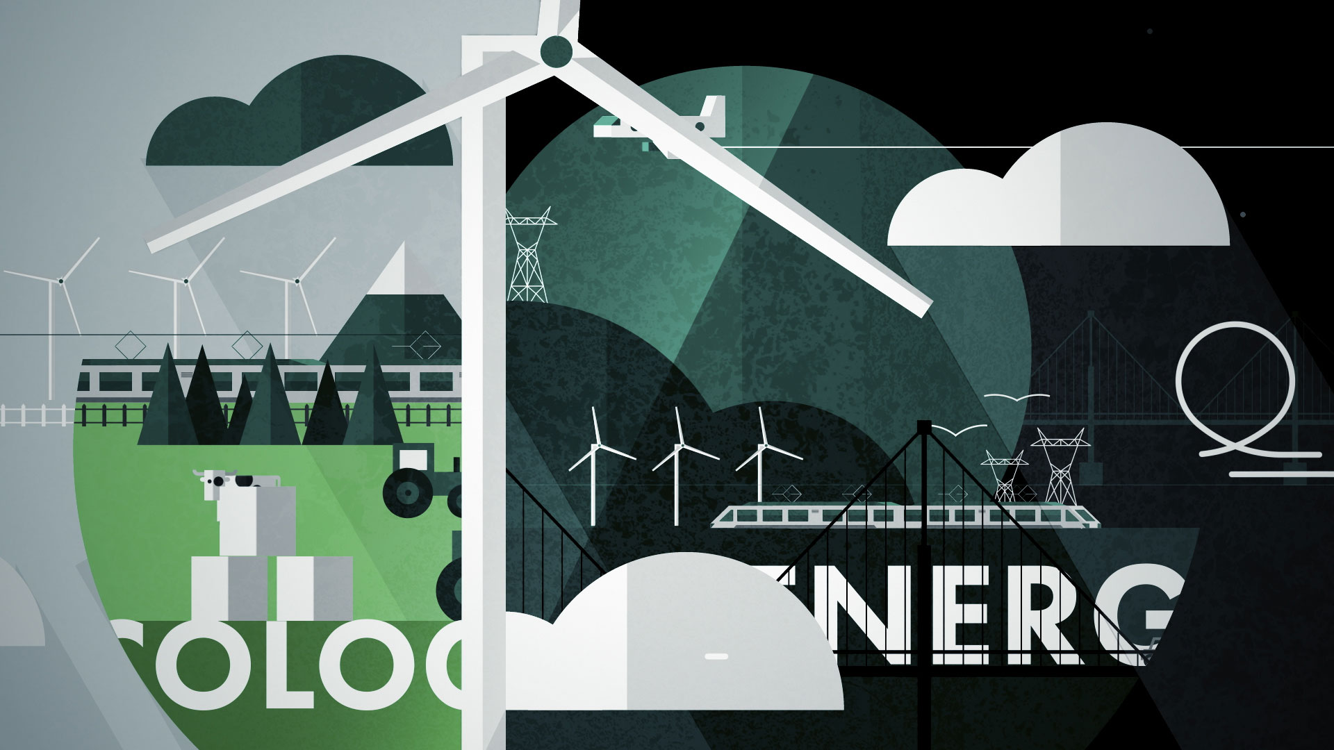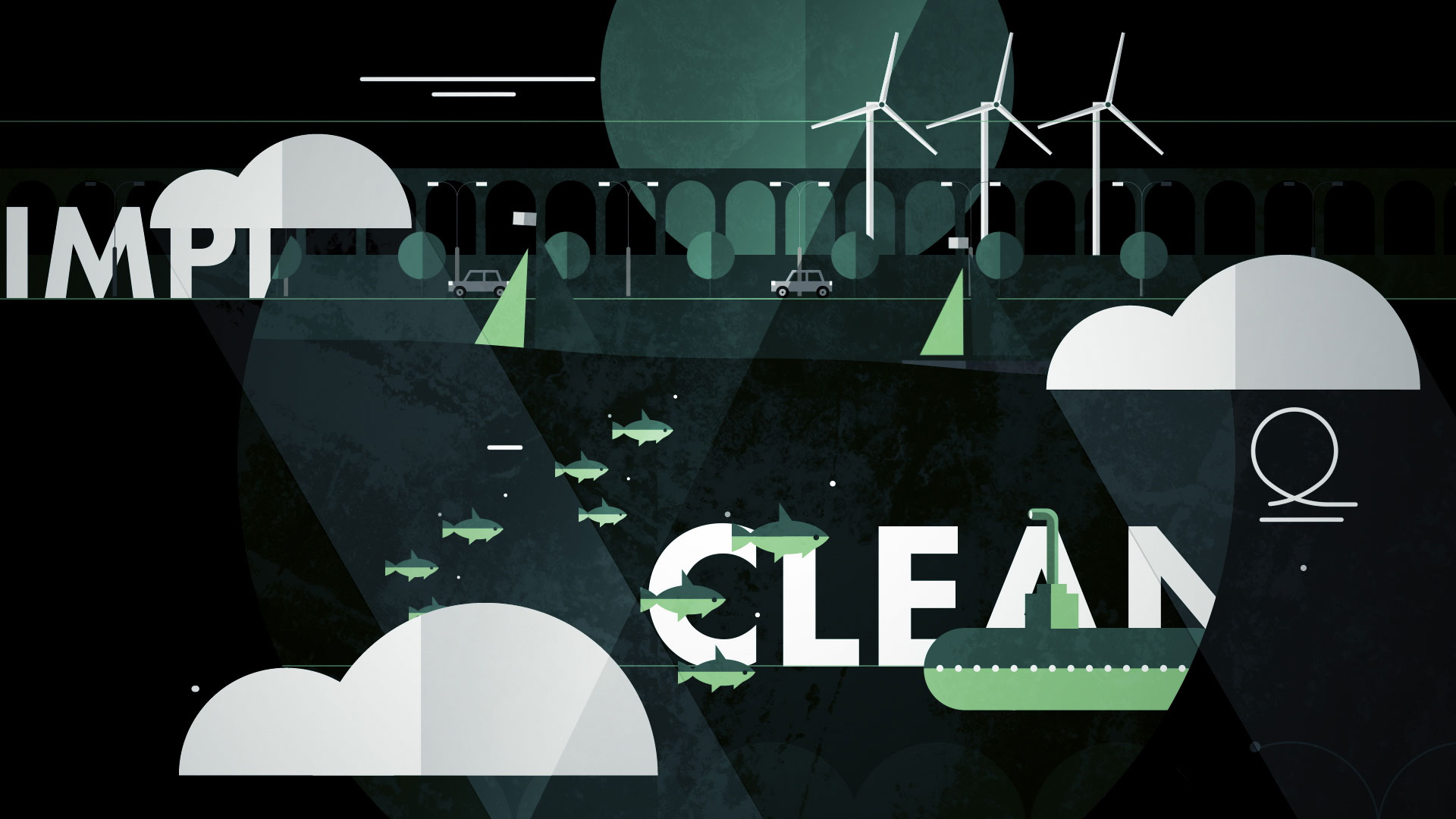 The advertising film for Cloverfield, a company specializing in energy distribution for transportation, features a clean and modern graphic design using a flat style. Dominated by green, symbolizing eco-friendliness (linked to the name “Cloverfield” and fields of clover), the logo combines the shape of a clover and wind turbine blades, referencing the company’s initial focus on renewable energy. The film follows various vehicles—land, sea, and air—through diverse landscapes (countryside, city, sea, underwater), all to the beat of an upbeat, catchy soundtrack. It conveys the message that Cloverfield is with us, supporting our mobility at every step, emphasizing accessibility and proximity.
