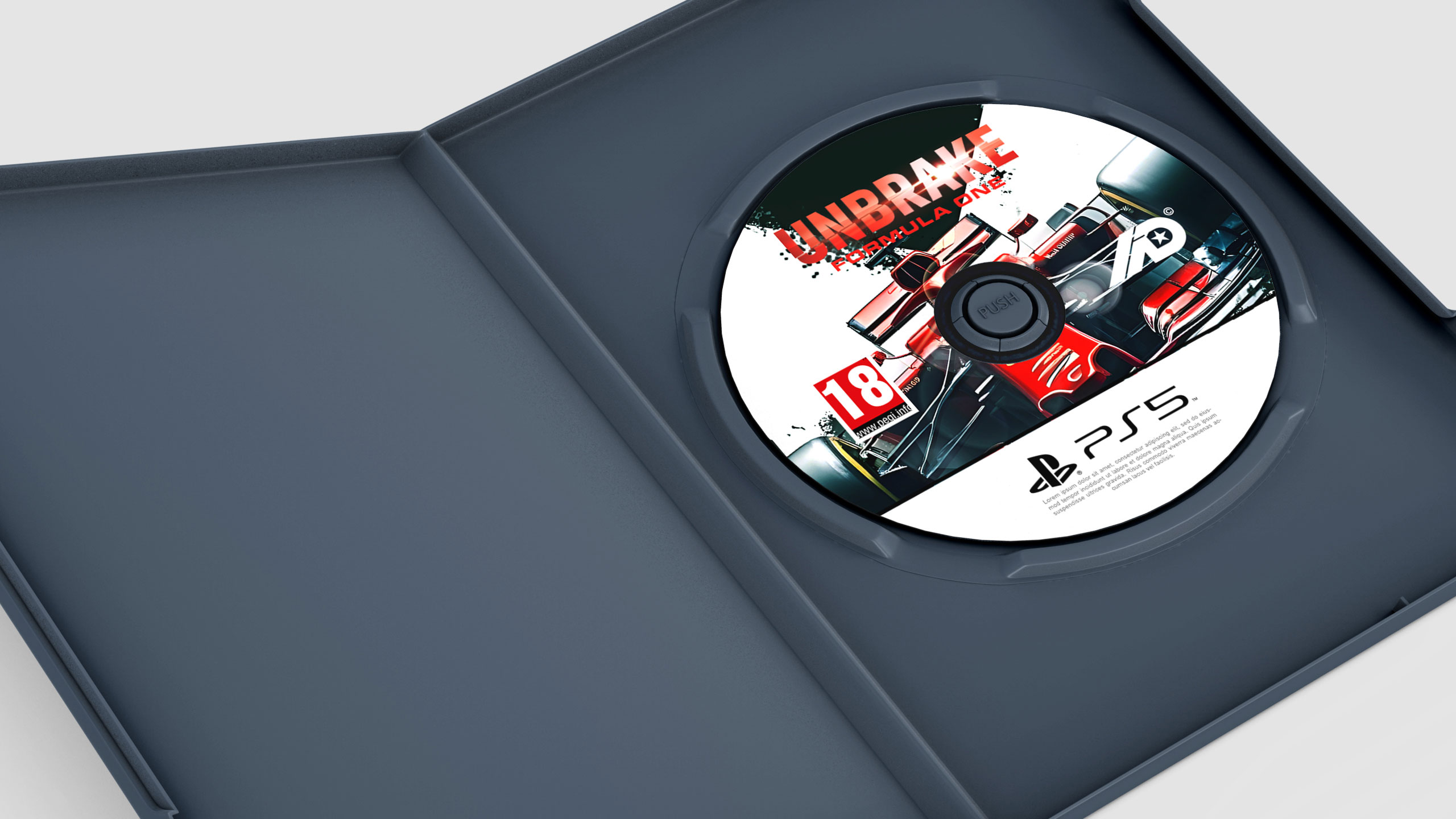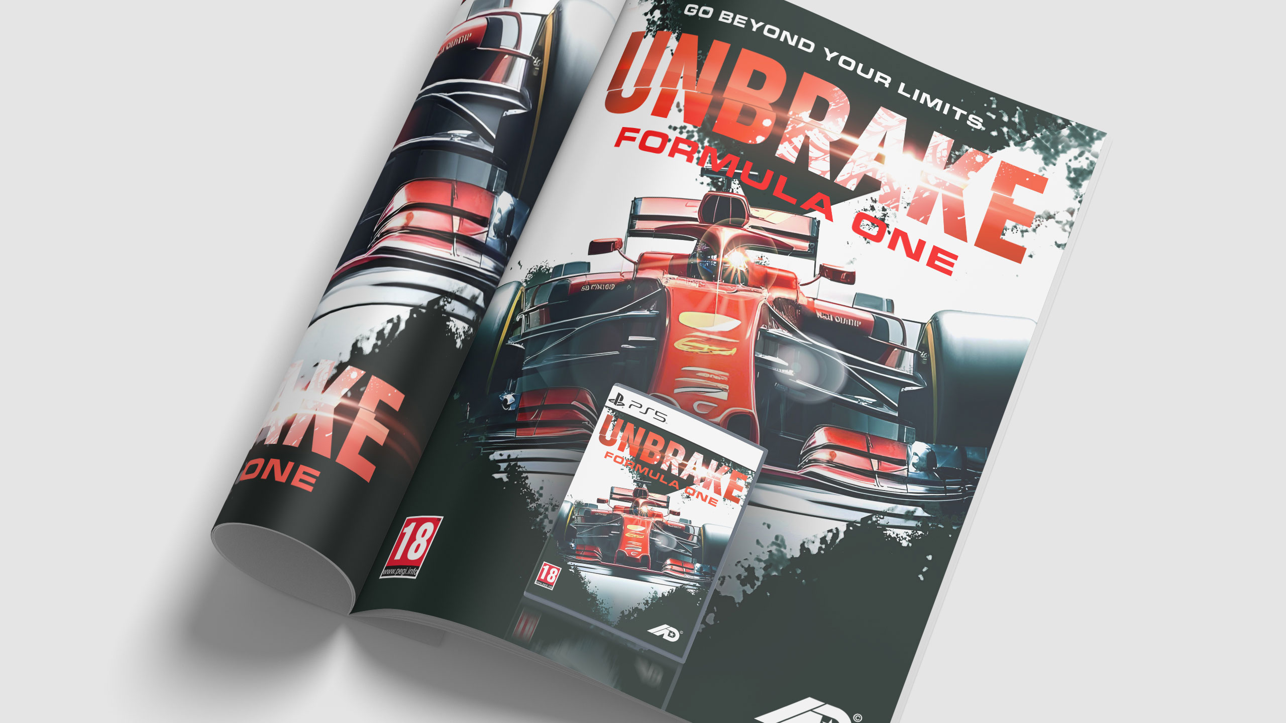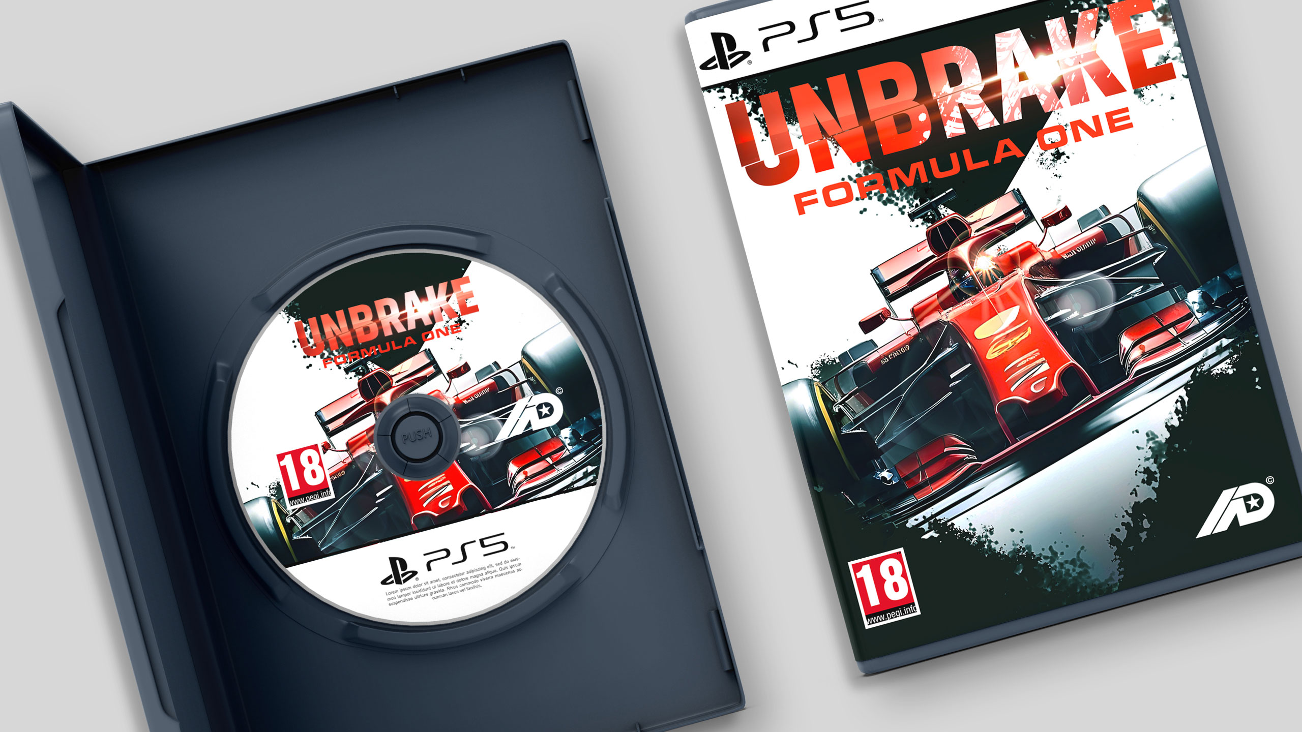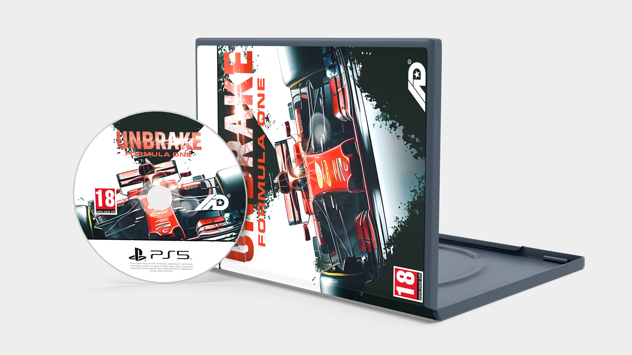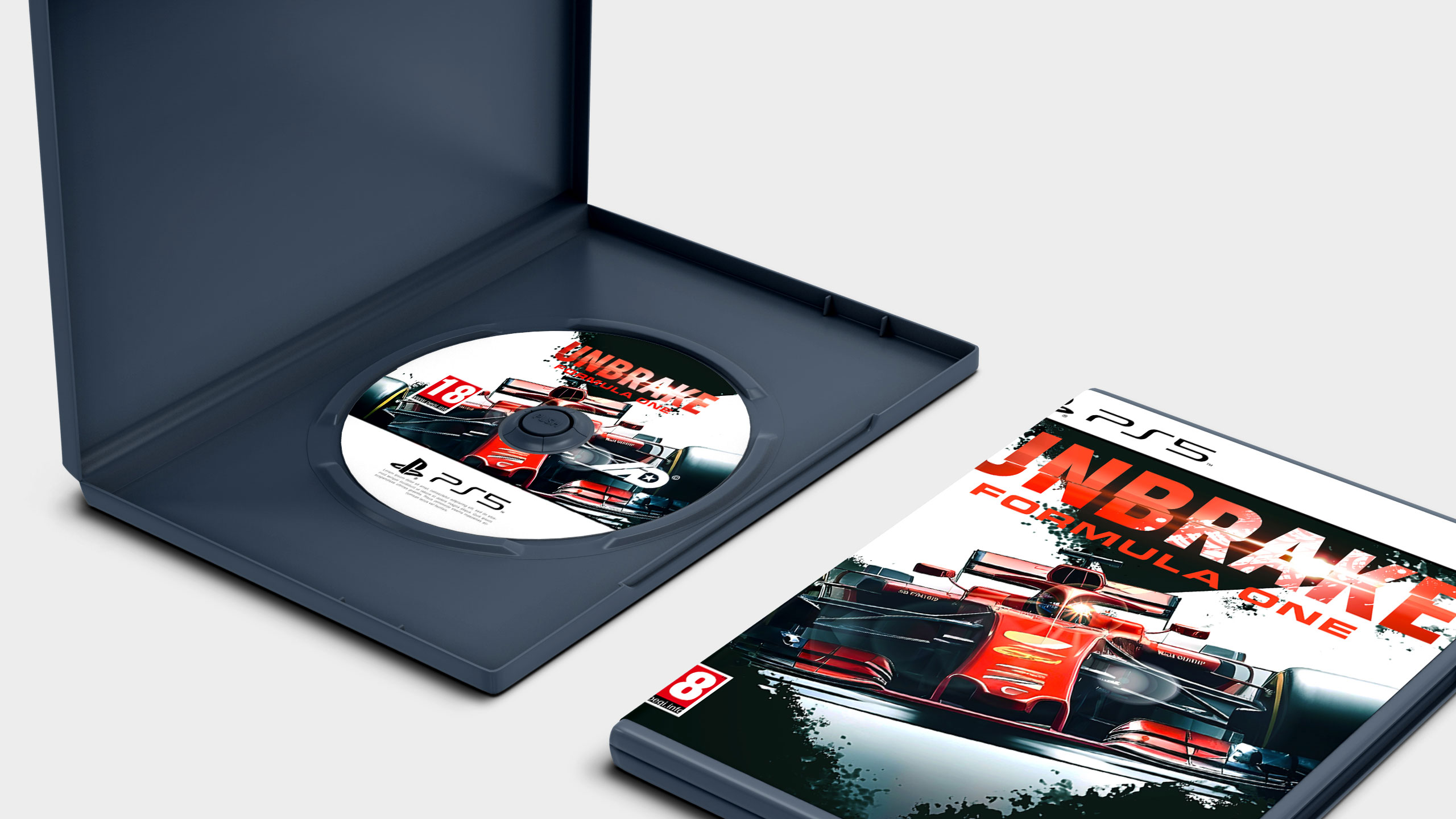 This dynamic design showcases a premium motorsport video game called UNBRAKE: Formula One. The packaging captures the thrill of racing, featuring a sleek, bold F1 car charging down the track with precision and speed. The cover design uses sharp motion graphic elements, intense colors, and a striking composition that reflects adrenaline and precision engineering. The physical case includes a crisp, high-resolution print of the car and a matching disc design, making it a must-have collectible for racing fans. This packaging and motion graphic style emphasize high-performance motorsport and appeal to avid gamers and Formula One enthusiasts alike.