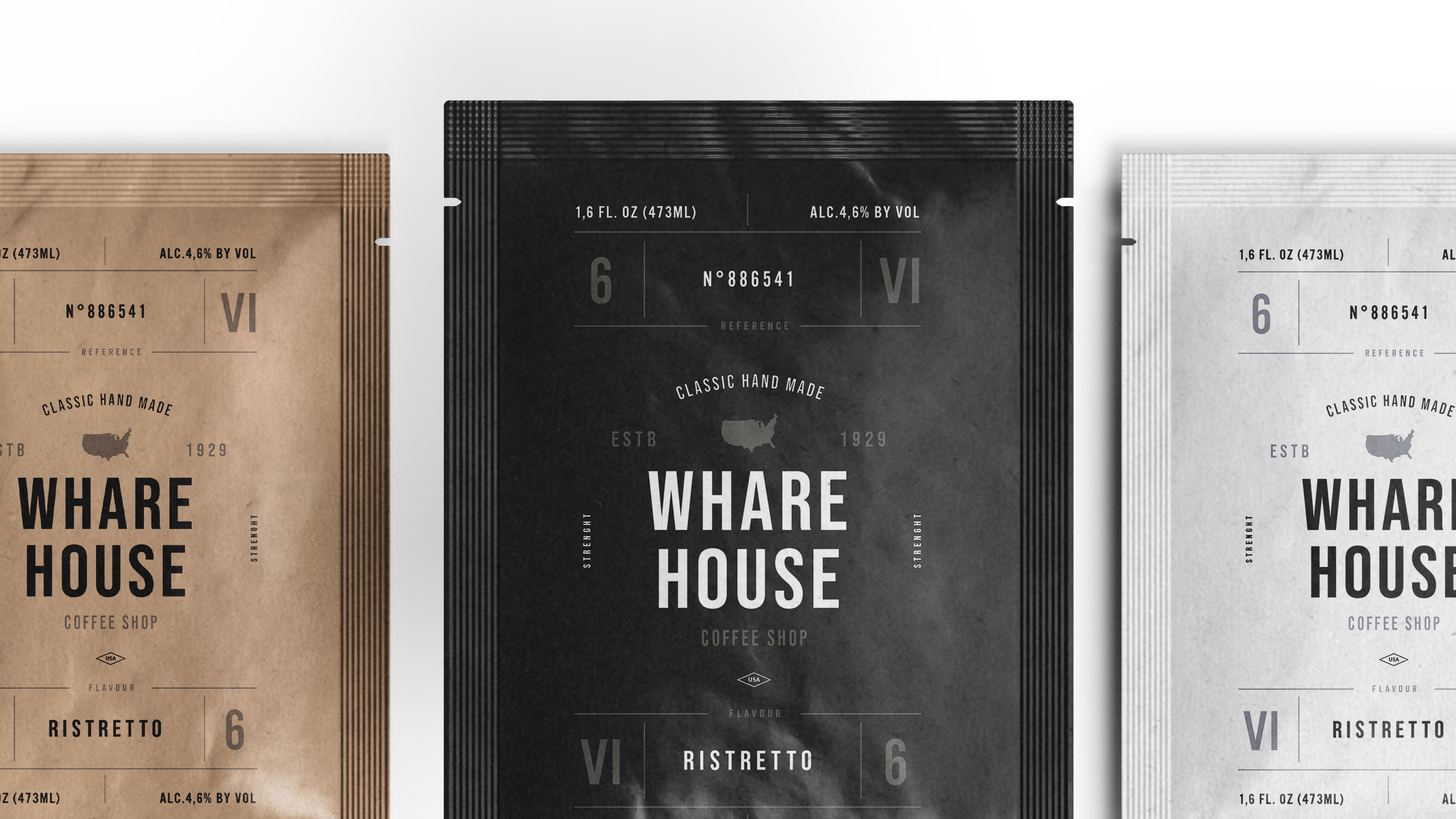 The graphic design of Whare House evokes the world of docks, cargo, and storage sheds, aligning with the brand’s identity rooted in craftsmanship and logistics. Dominated by natural kraft, black, and white, the visual language reflects an artisanal, eco-conscious ethos. The branding blends vintage textures with modern minimalism, suggesting heritage and professionalism. Coffee products are clearly structured using a numbered and color-coded system based on intensity. Applied to bags, cups, aprons, and stationery, the design communicates consistency and authenticity. Whare House aims to bring the expertise of a leading coffee distributor directly to the customer in an accessible and refined form.
