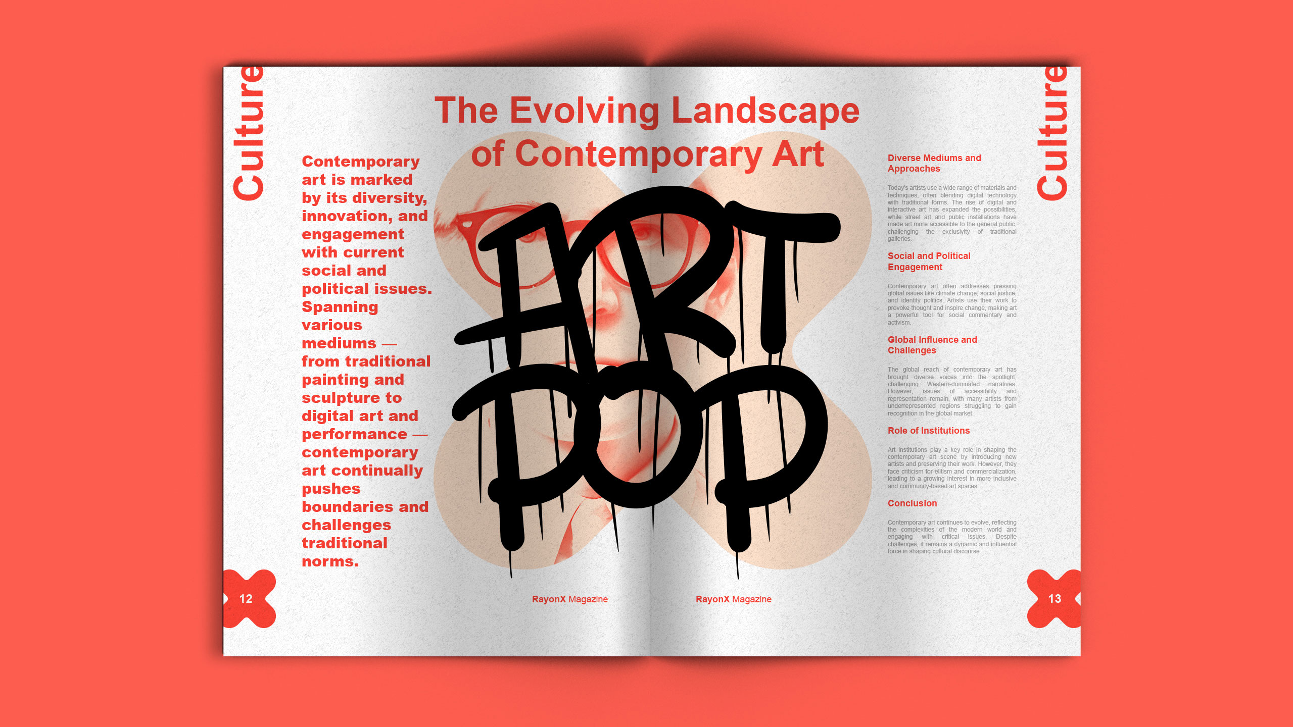 This is a visually striking society magazine titled X-Ray, symbolizing the act of “reading society through the lines.” Its editorial concept uses the X shape as a central visual and thematic element. Each spread explores bold cultural and societal topics—such as art, music, love, and social issues—through gritty typography, graffiti-inspired design, and a layered visual language. The magazine balances expressive headlines with raw, overlapping textures, evoking the complexity of modern discourse. The name “X-Ray” reflects its mission: to penetrate beneath the surface of contemporary life and reveal hidden truths and tensions that define our culture today.